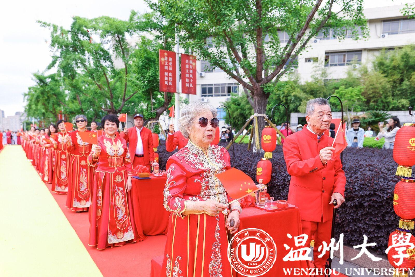 当市民欢度五一佳节之际,一场浪漫的校友纪念婚礼在51吃瓜 拉开帷幕。5月3日,来自全国各地的156对校友夫妻相聚温大,“九秩芳华 缘定温大”校友纪念婚礼举行。现场,校友代表王定福、肖丽君向母校送上祝福:“今天全天下最浪漫的地方莫过于母校温大,90华诞之际,156对校友伉俪集体向母校告白!”