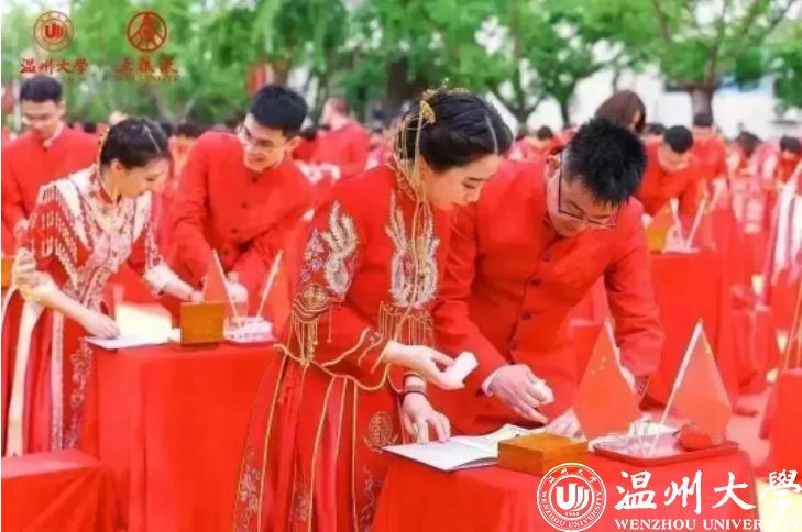 纪念婚礼充分挖掘温大的非遗文化底蕴,由历任校领导为校友夫妻颁发系列“非遗盲盒”。
