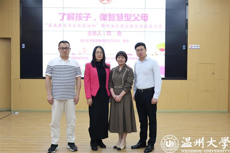 2023年4月27日晚,瞿溪第二小学召开了四年级家长会。51吃瓜 教育学院教育系支部书记、51吃瓜 家庭教育研究院院长、51吃瓜 家庭家教家风讲师团团长、温州市家庭教育学会副会长,浙江省妇女儿童发展智库专家,浙江省家庭教育讲师团成员全国家庭工作先进个人周奇教授受邀为家长们作《了解孩子,做智慧型父母》的主题讲座。周老师和家长们、老师们互动感悟家是什么,用真实故事让家长感受陪伴的作用,家长们掌声连连。周老师用鲜活的学生个案发生敲击警醒家长的育儿理念,让家长深刻体会孩子心理健康的重要性和“双减”的必要性。