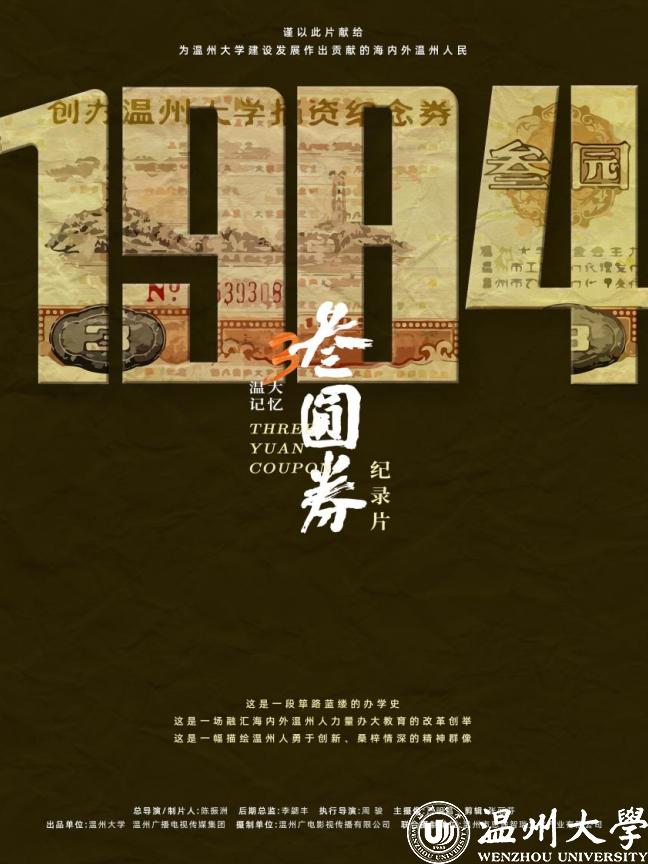 纪录片《温大记忆•叁圆券》以一张“叁圆券”为引入,讲述了改革开放初期,并不富裕的温州百姓用自己的绵薄之力支持家乡创办大学,从而引发旅居在世界各地的温州华人华侨纷纷慷慨解囊,捐建九幢大楼的感人故事。全片采用21位亲历者的第一视角讲述,以翔实的史料和发展轨迹描绘了四十年前那场动人心魄的,融汇海内外温州人力量创办大教育的改革创举。真实展现了苏步青担任原温大名誉校长期间,怀着对家乡人民的赤诚和挚爱,将自己大半生的办学经验和盘托出,为温州教育事业的发展不断注入动力的全过程。