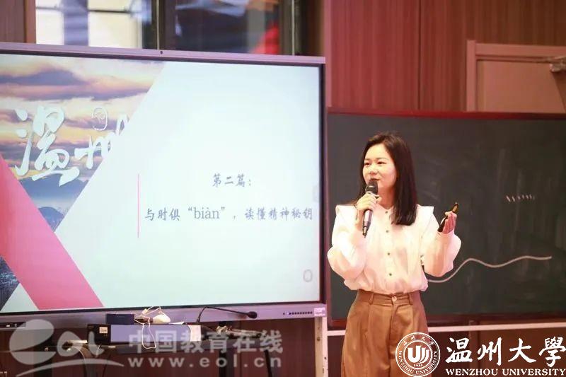 温州市第二高级中学的陈希贤带来微课《承“四千精神” 悟哲学涵养》,从因“shí”而生、追溯精神起源;与时俱“biàn”,读懂精神秘钥;历久弥“xin”,探寻时代价值三个篇章独特视角辨析“四千精神”的哲学涵养。