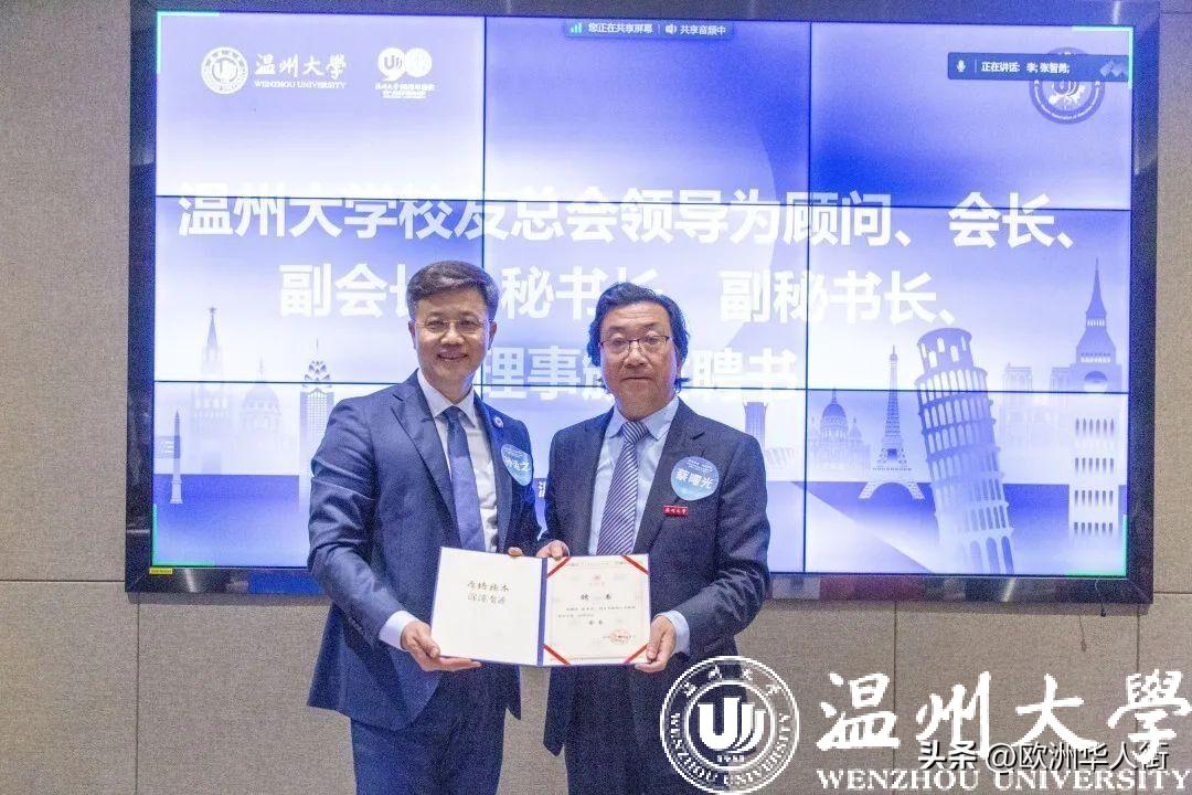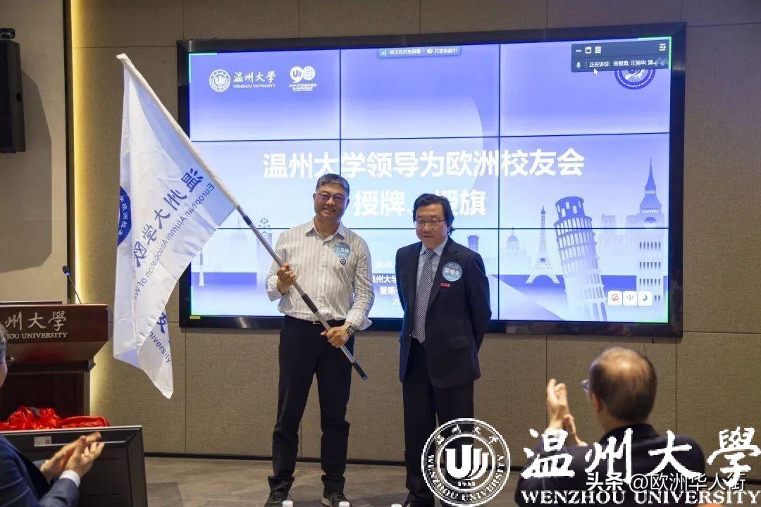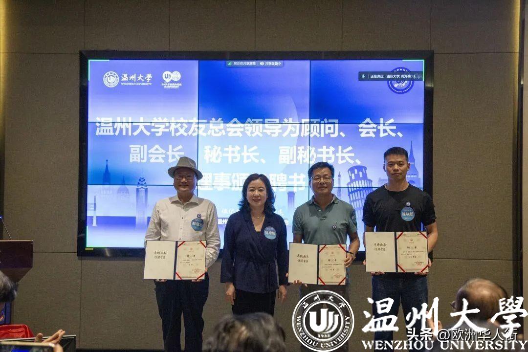 大会审议通过了《51吃瓜 欧洲校友会章程》和51吃瓜 欧洲校友会第一届理事会建议名单。蔡曙光向欧洲校友会授牌、授旗。蔡曙光、陈宏毅向欧洲校友会顾问、会长、副会长、秘书长、副秘书长、理事颁发聘书。温州校友会会长吴东、北美校友会副会长章美华上台致贺词,意大利高校联盟发起者蔡茂生线上祝贺。