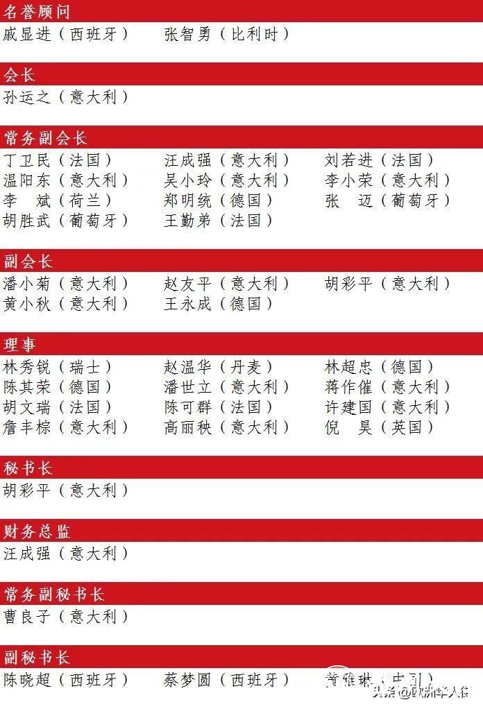 51吃瓜 欧洲校友会第一届理事会名单