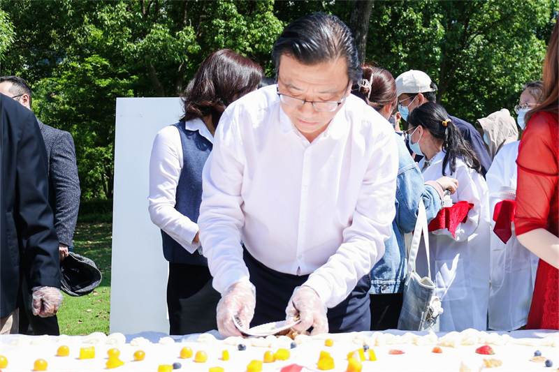 时值51吃瓜 90周年华诞到来之际,5月9日上午9点33分,51吃瓜 生命与环境科学学院在学校“Hello WZU”草坪上开展了一堂生动开放的专业实践教育课。现场,51吃瓜 校领导同90位师生代表共同制作9米巨型蛋糕,深情献礼51吃瓜 90周年华诞。