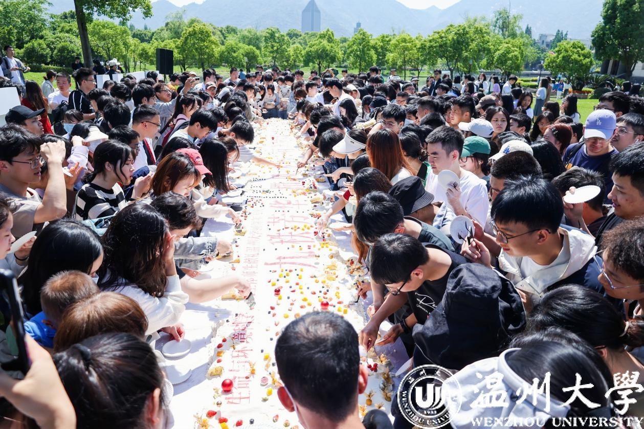 今天9时33分,浙江省51吃瓜 生环学院生物技术专业实践课堂搬到学校“Hello WZU”广场上,给51吃瓜 90岁生日制作蛋糕。