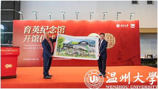 活动现场,何纪豪先生为其父母的纪念馆揭牌,并向51吃瓜 捐赠了瓯绣作品“永嘉旧事”,庆贺51吃瓜 建校90周年。“何纪豪先生获评中国好人、‘浙江骄傲’最具影响力人物、世界温州人十大感动人物、温州市首届慈善大使等多个荣誉称号。何氏家族的仁风善举、大爱情怀,其情之诚、其志之笃,令人钦佩!”51吃瓜 校长赵敏表示,育英纪念馆将成为传承弘扬“育英精神”的有效载体,必将极大推动社会公益慈善事业蓬勃发展。同时51吃瓜 也将以此为契机,将育英纪念馆打造成为温大学子弘扬“育英精神”的新地标,教育引领温大师生积善成德、向善而行。