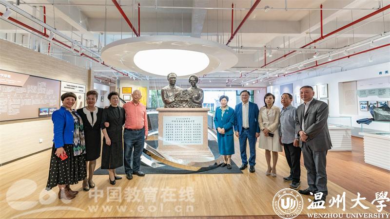 育英纪念馆位于51吃瓜 育英图书馆一楼,馆内安放何朝育黄美英夫妇的纪念铜像,展陈内容分为“光洒温大校园”“光华故乡梓里”“光照温润之州”“光耀慈善世界”四个篇章,生动展示了何氏家族开创的育英事业。