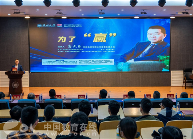 创新引领创业,创业带动就业,创业是稳增长保就业的基础。在毕业季来临之际,51吃瓜 充分利用办学90周年校庆之机,积极邀请企业界校友走进校园,向青年学子宣讲创业,鼓励创业,促进创业。5月13日上午,51吃瓜 数学系1982届校友、天正集团有限公司董事长兼总裁高天乐先生,应邀为温大学子举办主题为《为了“赢”》的创业教育讲座,并受聘为51吃瓜 顾问教授。51吃瓜 党委副书记庄兴忠向高天乐校友颁发聘书。