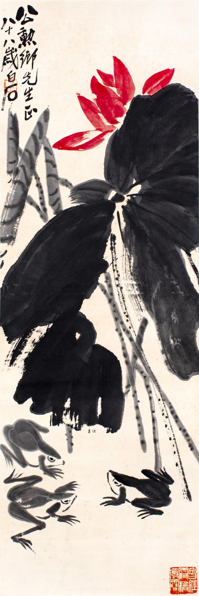 齐白石 《荷花》 103cm×35cm 中国画