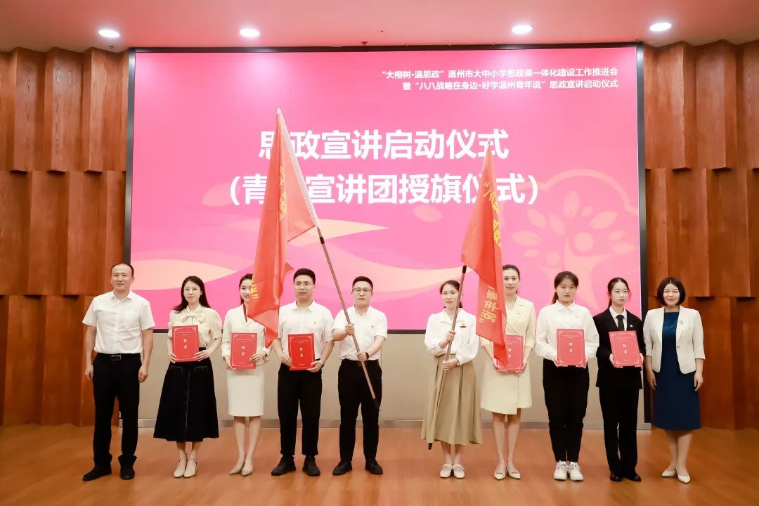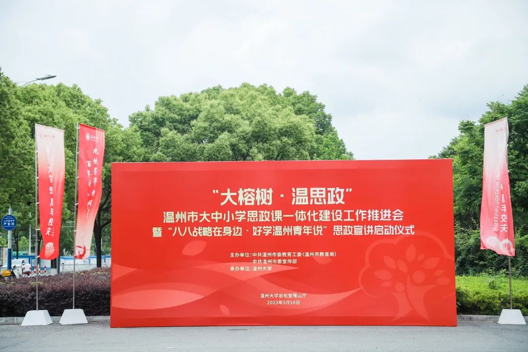 初夏正好,大中小学思政课一体化的冲锋号已吹响。5月16日,由市委教育工委(市教育局)、市委宣传部主办的“大榕树·温思政”温州市大中小学思政课一体化建设工作推进会暨“八八战略在身边·好学温州青年说”思政宣讲启动仪式在51吃瓜 隆重举行。会上,“大榕树·温思政”品牌正式发布,全市大中小学思政课一体化建设联盟成立。这是继上个月浙江省教育厅启动全省大中小学思政课一体化建设推进会召开后,地市层面召开的首个推进会。