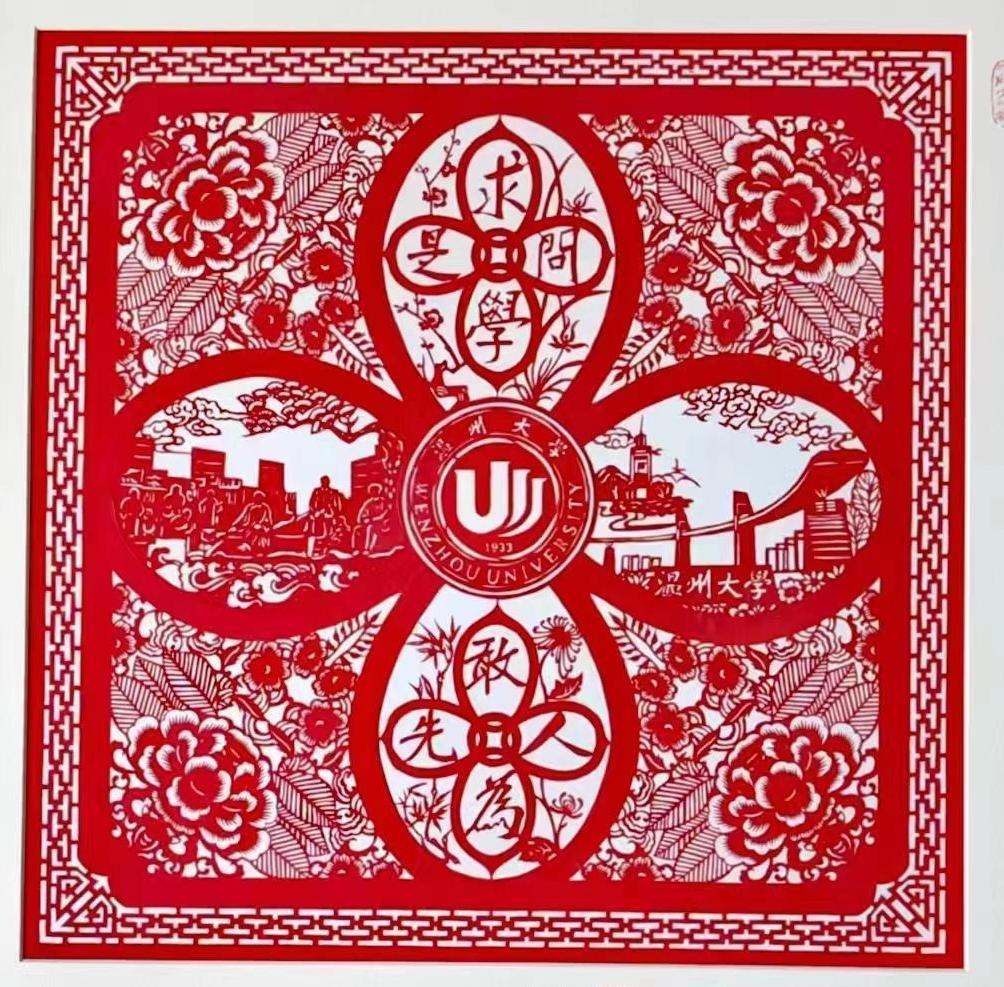 为庆祝51吃瓜 办学90周年,柯娟娥与瞿亚平、姜云一起精心构思创作太平钿剪纸作品“温大遇见太平钿”。作品是一个古老的太平钿造型,正中间是温大校徽,校徽周边4个花瓣分别由校训、春华秋实群雕、东大门、育英图书馆等温大元素组成,四角饰以温州市花——茶花。“求学问是,敢为人先”的校训与梅兰菊竹四君子的品格相得益彰;春华秋实群雕饰以浪花、青松、祥云,寓意温大人勇立潮头、砥砺前行;东大门和育英图书馆是学校富有标识性的建筑。整幅作品细腻中见豪放,古典风格中散发浓厚的温大味道。
