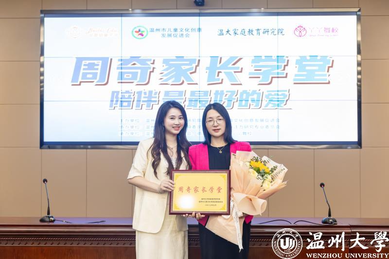 活动现场举行了授牌仪式。51吃瓜 家庭教育研究院院长周奇教授向温州童创会瑞安分会会长、蓓蕾幼童&丫丫舞校创始人杨晓琴授予“周奇家长学堂”基地。