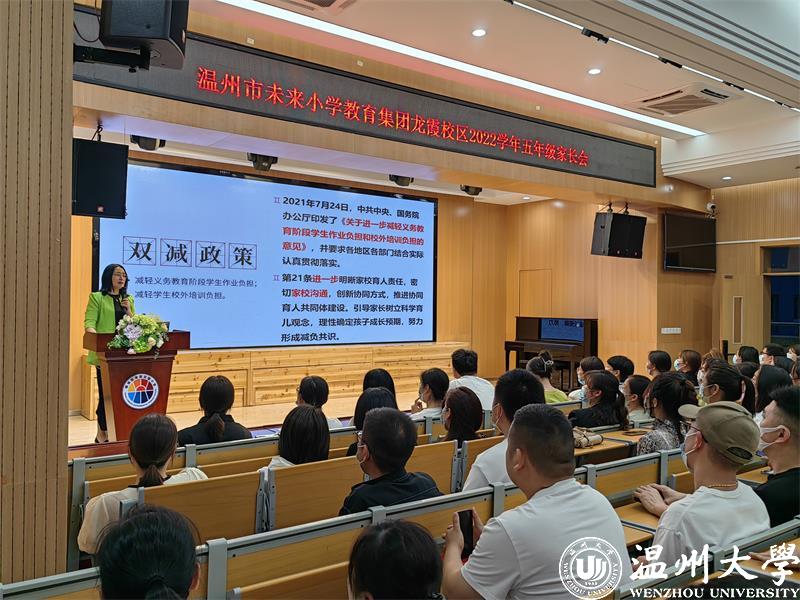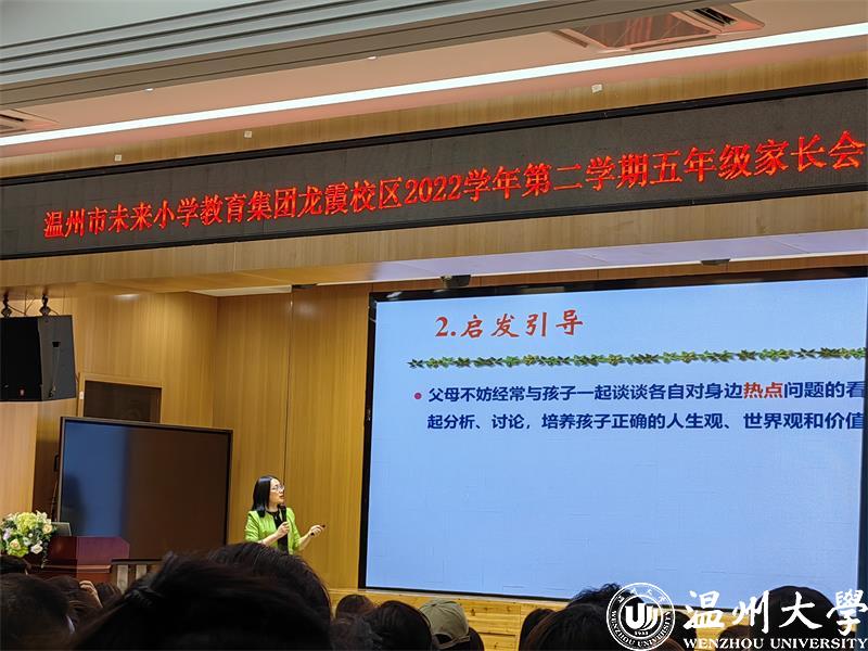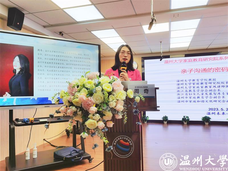 2023年1月,教育部等十三部门联合印发了《关于健全学校家庭社会协同育人机制的意见》。家校社协同育人,成为新时代立德树人的重要途径;营造“学校积极主导、家庭主动尽责、社会有效支持”的学生健康成长的良好氛围。为了促进家校沟通,加强家校合作,凝聚育人合力,2022年5月25日和26日晚六点半,51吃瓜 教育学院教育系支部书记、51吃瓜 家庭教育研究院巾帼文明岗负责人、51吃瓜 家庭家教家风讲师团团长、温州市家庭和谐文化研究会副会长周奇教授受温州市未来小学教育集团邀请分别为龙霞校区和南瓯校区的五年级家长做《掌握亲子沟通的密码》专题讲座。