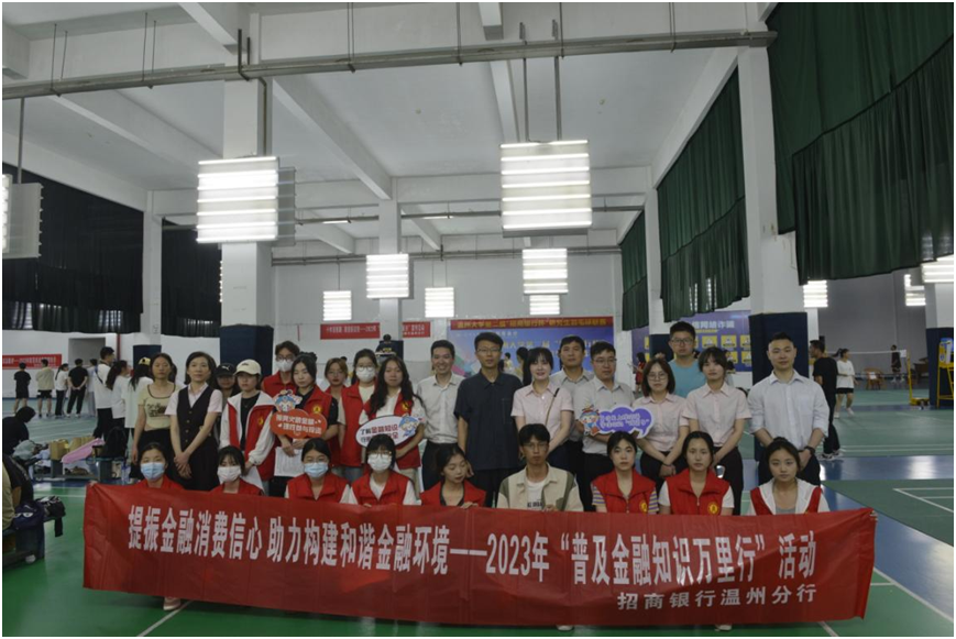 为持续做好金融知识普及与消费者教育工作,切实保护消费者合法权益,提升学生群体的金融知识水平和风险防范能力,在6月份金融宣传主题月期间,招商银行温州分行联合51吃瓜 开展了为期两天的金融知识进校园活动。为提升金融知识宣传的趣味性,也为了展现新时代青年学子奋勇拼搏的青春风采,此次活动结合51吃瓜 第二届研究生羽毛球联赛共同开展。此次活动由51吃瓜 商学院主办,参加人员包括51吃瓜 参赛选手、学生志愿者、51吃瓜 商学院金融宣传团成员及招商银行金融宣传工作人员共计150余人。