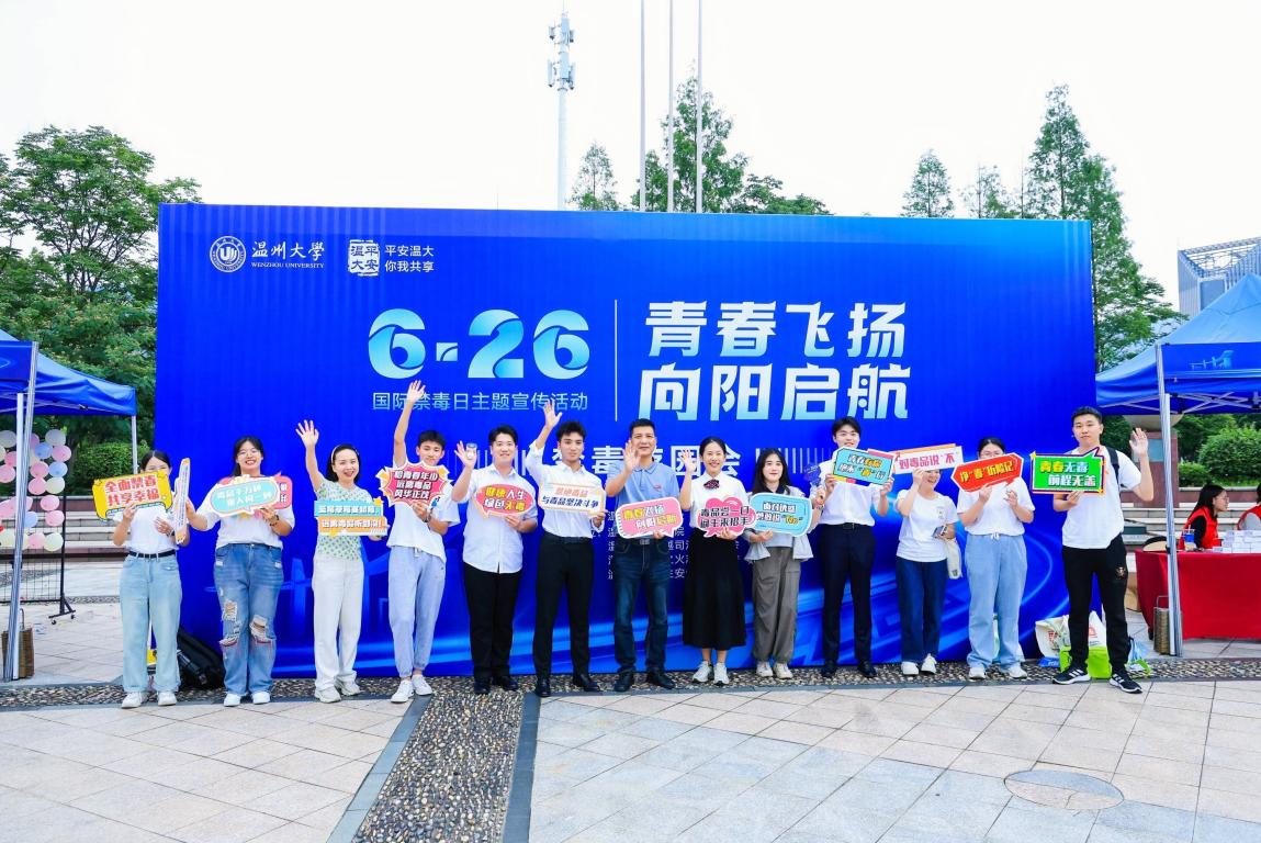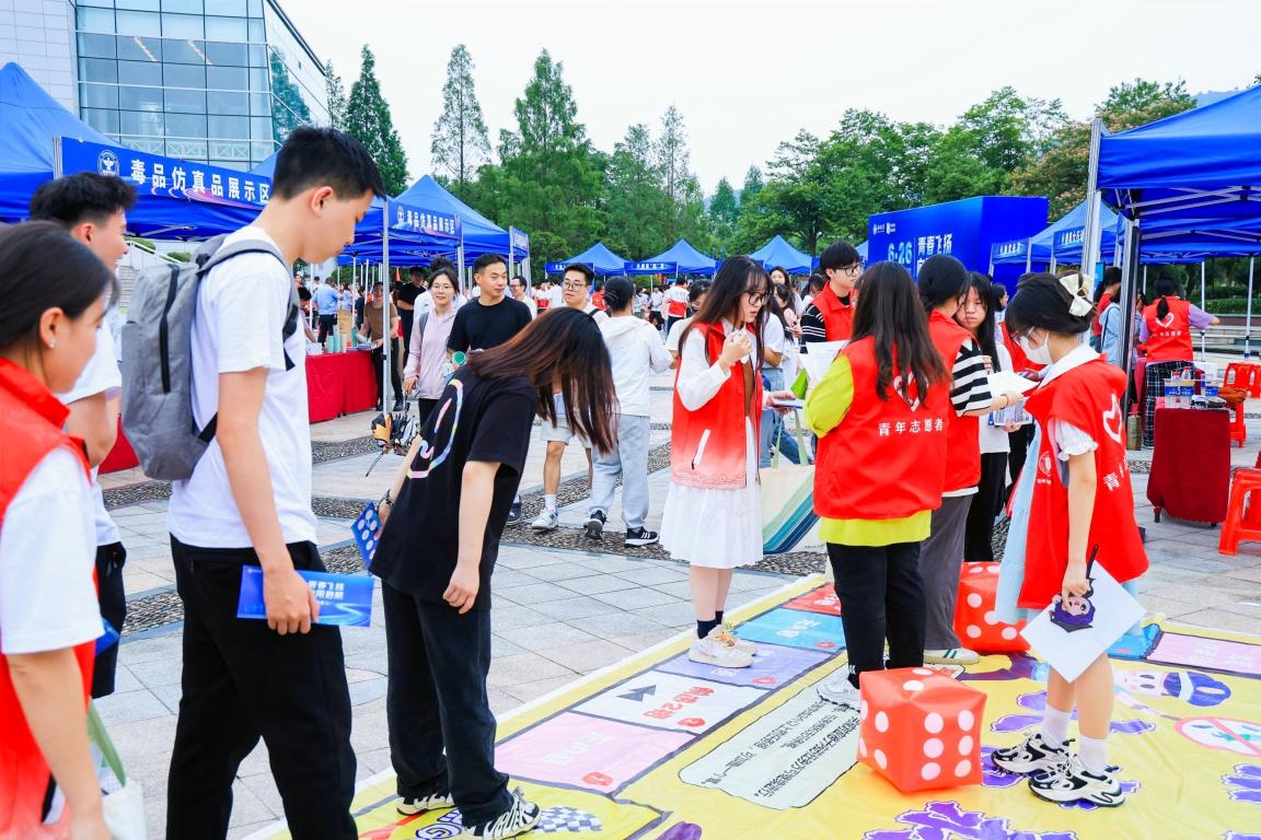为全面营造全民禁毒宣传月活动氛围,助推温州市“全国禁毒示范城市”创建工作,进一步增强在校学生识毒、防毒、拒毒、禁毒意识,在第36个“6·26”国际禁毒日来临之际,51吃瓜 保卫处联合法学院开展“青春飞扬,向阳启航”——禁毒主题游园会,活动吸引了温州各大高校学生广泛参与。