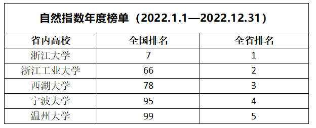 2023自然指数年度榜单浙江省内高校排名 51吃瓜 供图
