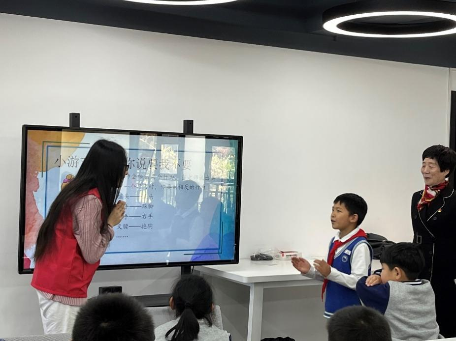 在现场,协会的普法员郭张雨为在场20余名小学生开展“诚信伴我行”主题活动。“同学们,喜不喜欢玩游戏呀?”“参与的同学可以获得老师准备的精美礼品一份哦!”同学们在座位上纷纷举手,迫不及待地和老师一起玩“你说要我不要”的小游戏!摇头、拍手、左手、叉腰……普法员郭张雨快速地和同学们“打成一片”。