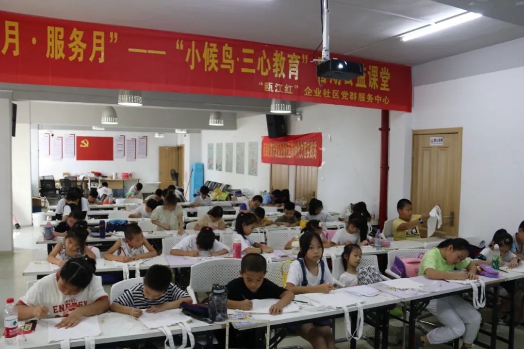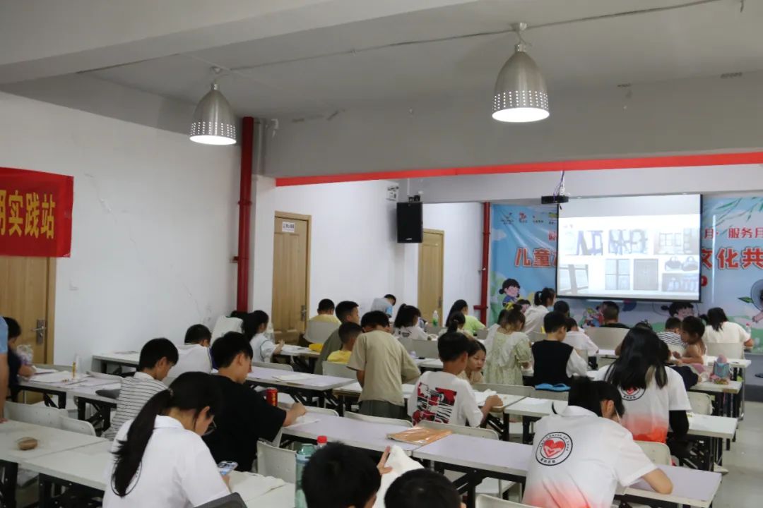 蓝夹缬,又称温州蓝夹缬,为中国传统印染四缬之一。为了传承并发扬温州民俗文化,本期“小候鸟”暑期公益课堂开设蓝夹缬体验及技艺培训系列课程,让这个小众“非遗”产品“火”起来。7月14日下午,企业社区联合51吃瓜 “爱的历程”暑期实践队开展绘“夹缬”之蓝,品创造之美活动,共40名“小候鸟”参加。