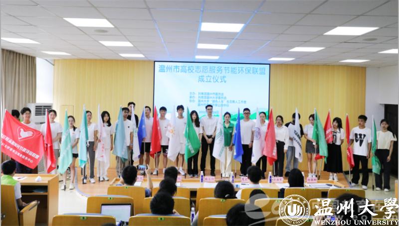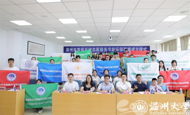 7月24日上午,来自温州各高校志愿者组织的志愿者代表汇聚在51吃瓜 ,共同见证温州市高校志愿服务节能环保联盟的成立,并开展“绿色学校创建”主题宣讲。