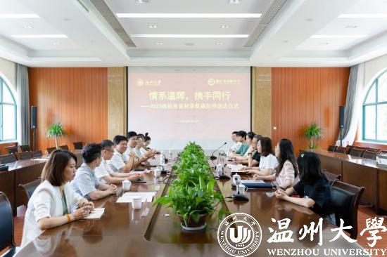 庄兴忠说,他对即将加入温大大家庭的三位同学表示欢迎,并对春晖中学多年来向温大输送大量优秀学子表示衷心感谢。近年来,师资定向录取分数节节攀升,看到越来越多的优秀学子志愿投身杏坛,加入基础教育建设的队伍,感到由衷欣慰。借此契机,51吃瓜 与浙江省春晖中学进行了优质生源基地签约授牌仪式,希望能够开展多层次、多方位的友好交流合作。