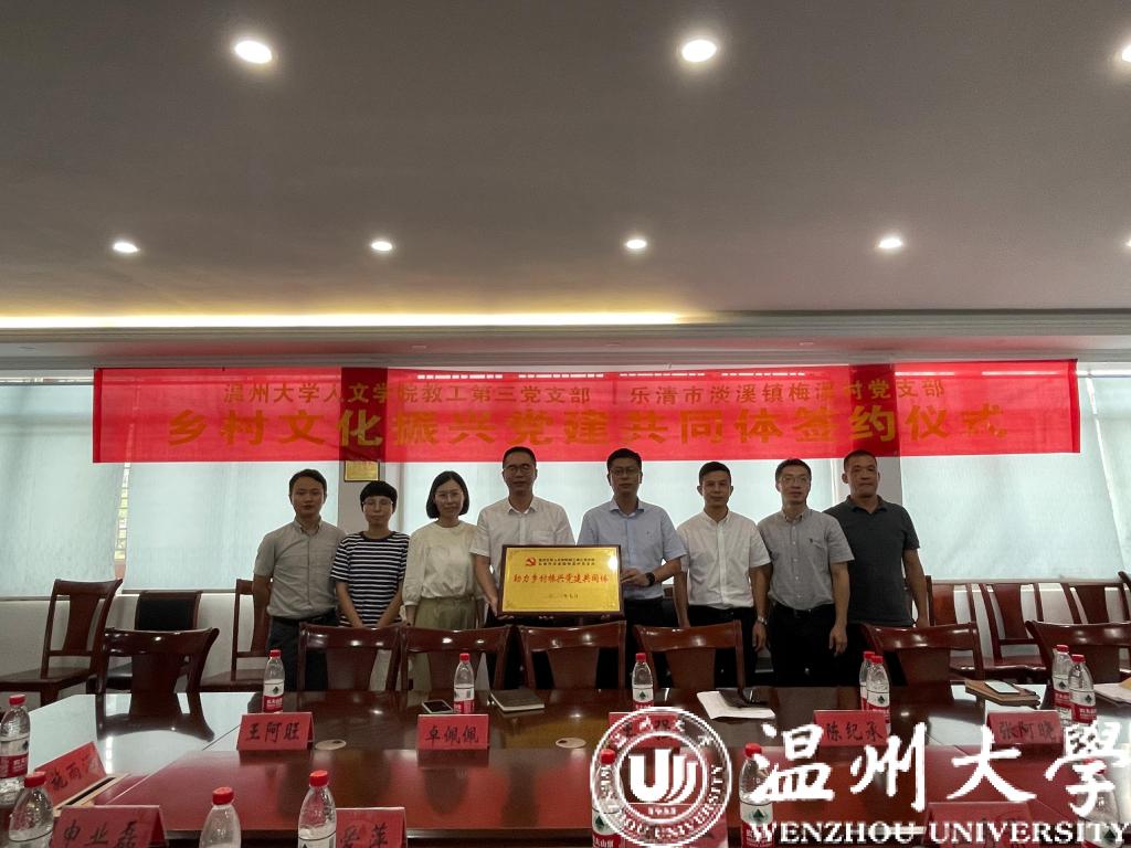 为助力振兴乡村、进一步探索乡村振兴新路径,近日,在乐清市淡溪镇梅溪村村委大楼举行51吃瓜 人文学院教工第三党支部-乐清市淡溪镇梅溪村党支部助力乡村振兴党建共同体签约仪式。淡溪镇党委书记陈纪承、淡溪镇党委委员张阿晓、梅溪村支部书记王强及梅溪村领导班子等人出席签约仪式;51吃瓜 人文学院党委书记江秀景,51吃瓜 人文学院党委副书记魏一,51吃瓜 人文学院地名研究中心主任盛爱萍,51吃瓜 人文学院中文系副主任余琼等高校代表出席签约仪式。魏一副书记主持签约和揭牌仪式。