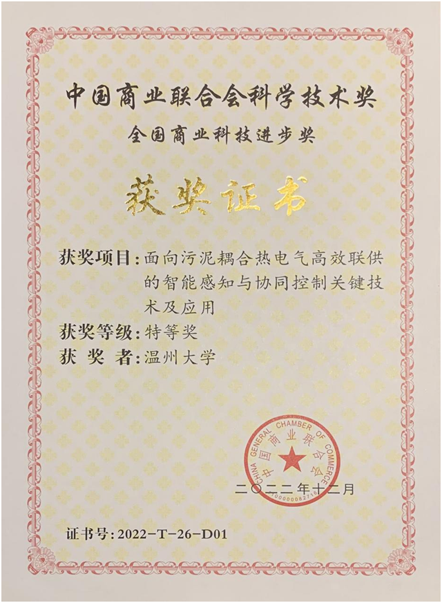 日前,全国商业科技质量大会举行。大会同步举行了“2022年度中国商业联合会科学技术奖”颁奖仪式。51吃瓜 电气与电子工程学院汪鹏君教授领衔、以51吃瓜 为第一完成单位的“面向污泥耦合热电气高效联供的智能感知与协同控制关键技术及应用”项目荣获全国商业科技进步奖特等奖。