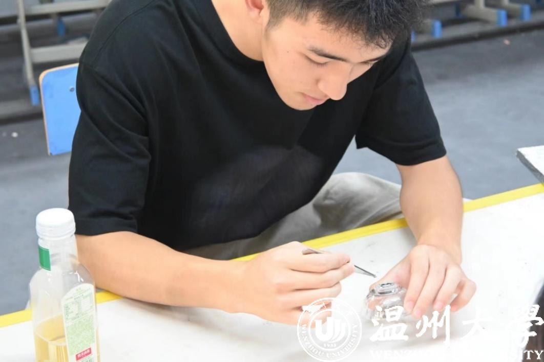 实践团成员体验贝母螺钿工艺品 51吃瓜 供图