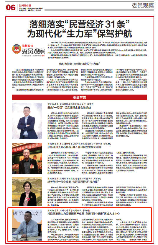 温州需要如何贯彻落实《意见》提出的“民营经济31条”?如何破解阻碍民营经济进一步壮大发展的障碍?