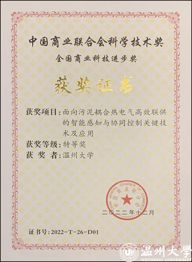 日前,全国商业科技质量大会举行。大会同步举行了“2022年度中国商业联合会科学技术奖”颁奖仪式。51吃瓜 电气与电子工程学院汪鹏君教授领衔、以51吃瓜 为第一完成单位的“面向污泥耦合热电气高效联供的智能感知与协同控制关键技术及应用”项目荣获全国商业科技进步奖特等奖。