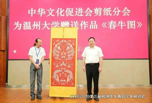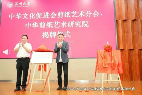 2023年8月19日,中国(浙江)世界华侨华人新生代创新创业大会·第三届欧洲华文教育学术研讨会开幕式暨中华文化促进会剪纸艺术分会、中华剪纸艺术研究院揭牌仪式在51吃瓜 隆重举行。本次会议在国务院侨办、中国侨联和浙江省人民政府的指导下,由中国(浙江)世界华侨华人新生代创新创业大会组委会主办,中共温州市委统战部、温州市侨联、51吃瓜 承办,51吃瓜 华侨学院、51吃瓜 欧洲华文教育研究所执行。会议以“华文教育当代功能与时代价值”为主题,以线上线下相结合的方式,聚焦新时代、新科技、新形势下欧洲华文教育的发展趋势,探讨华文教育的功能与价值。