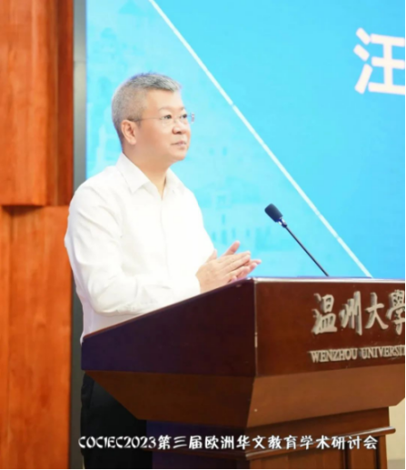 温州市委常委、统战部部长汪驰在致辞中表示,华文教育是海外植根最深、覆盖最广、加强国际传播最有效的中华文化传播形式,海外华文学校是涵养海外新生代家国情怀的重要载体,是根植爱国爱乡之情,感召报效桑梓之意的重要场所。温州华文教育积淀深厚,开创全国先河,涵养了大批海外新生代。温州设有海内外各级各类华文教育基地41个,与70余家海外温籍华文学校内外联动,推动中华文化海外传播、涵养海外新生代成效显著。1999年率全国之先开展海外华裔青少年“中国寻根之旅”夏令营;全国首个全日制华文班、首个华侨网络学院、首个华文教育成果展、首个中国华侨华人研究基地、首个中国侨益保护研究基地、首个华侨华人学硕士学位点、首届欧洲华文教育学术研讨会等举措,彰显了华文教育“温州现象”。