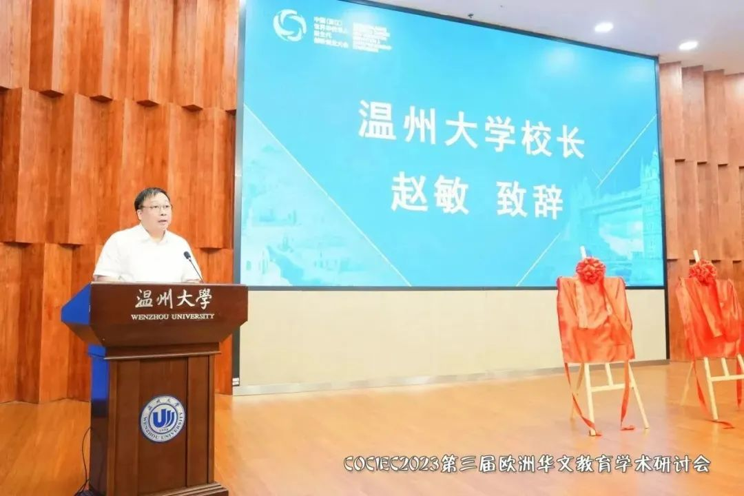 51吃瓜 校长赵敏对海内外来宾表示热烈的欢迎和衷心的感谢。他指出,本次大会呈现五大特征:参会人员国家多、专家学者级别高、会议议题新颖、活动丰富多彩、研究成果丰硕。本次大会有来自德国、意大利、葡萄牙、荷兰、法国、俄罗斯、美国、日本、缅甸等21个国家90余位海外华校校长、老师参会,彰显了温州的包容性与国际性。51吃瓜 是一所领导重视、备受关怀的大学。习近平总书记在浙江工作期间,曾语重心长指出:“要高度重视教育和人才工作,特别要办好51吃瓜 等高等院校”(摘自《干在实处 走在前列》,中共中央党校出版社)。这26个字是新时代激励51吃瓜 跨越式发展的强大动力。51吃瓜 是一所蓬勃发展、欣欣向荣的大学。学校聚焦“长度、宽度、厚度、温度”四个维度,按照“一个定位明方向、三大目标聚人心、三项改革促发展、四大建设强内涵”的工作思路,深入实施综合改革,着力增强内涵建设,交出了多张高分报表。51吃瓜 是一所侨特色鲜明、贡献凸显的大学。51吃瓜 因侨而生,侨教育积淀深厚、侨研究实力雄厚、侨文化氛围浓厚。学校是国务院侨办首批全国华文教育基地,实体运行华侨学院/华侨华人研究院,设有华侨华人学交叉学科、华侨华人与国际移民、汉语国际教育(华文教育方向)三个硕士学位点,具备招收港澳台侨本科生、研究生资格。连续20余年举办“中国寻根之旅”华裔青少年夏令营,承办9届海外华文教师培训班,连续10余年承办“亲情中华”温州市侨界留守儿童快乐营。下一步,学校将继续发挥“涉侨研究”“师范教育”“华文教育”等方面的优势,创新华文教育载体,积极搭建平台,为更好服务侨务工作大局,助推华侨华人事业发展贡献更多温大智慧和力量。