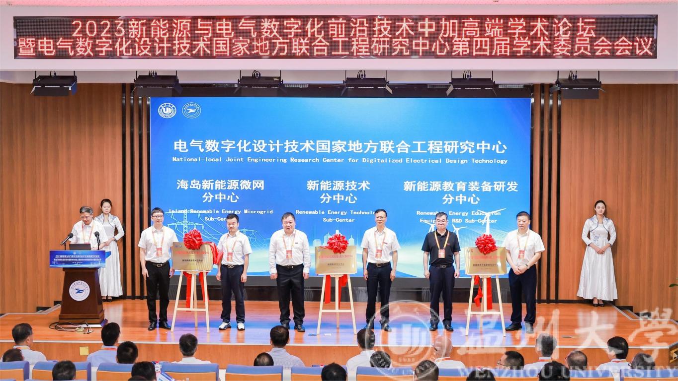 会议上宣布了电气数字化设计技术国家地方联合工程研究中心第四届学术委员会名单,还为电气数字化设计技术国家地方联合工程研究中心和落户在安防学院的新能源技术分中心、落户在国网平阳中心的海岛新能源微网分中心、落户在亚龙智能装备集团股份有限公司的新能源教育装备研发分中心等三个分中心揭牌。当天,由安防学院、51吃瓜 联合新能源龙头企业创设的新能源行业产教融合共同体举行了启动仪式。