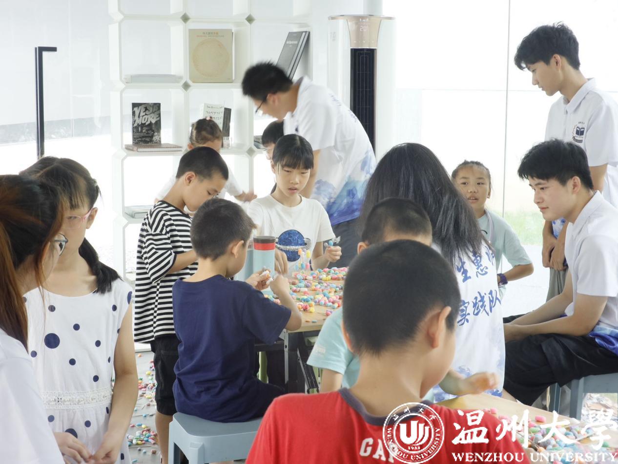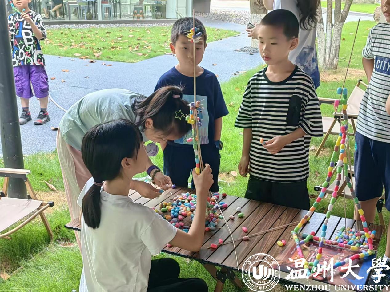 在51吃瓜 榕亭书屋,51吃瓜 暑期实践队和小朋友们一起开展了一堂“温大第一高楼”建设大比拼。活动利用牙签、木棍与彩色泡沫球搭接,进行“建设大比拼”,对比各组的搭建高度。