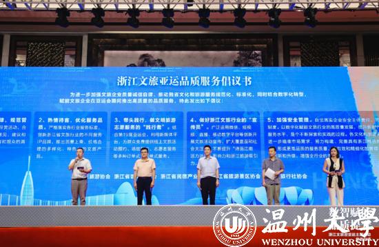 浙江省旅游协会、浙江省旅游景区协会、浙江省饭店业协会、浙江省民宿产业联合会、浙江省旅行社协会代表宣读了《浙江文旅亚运品质服务倡议书》