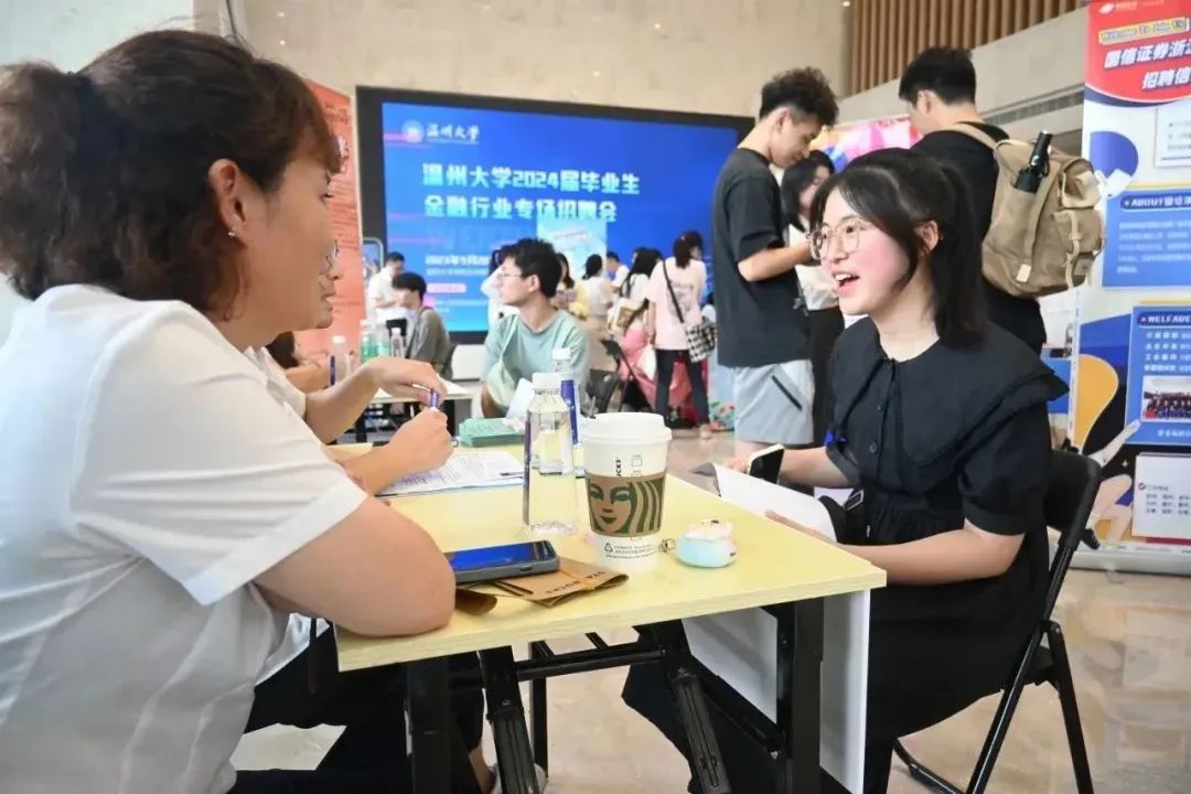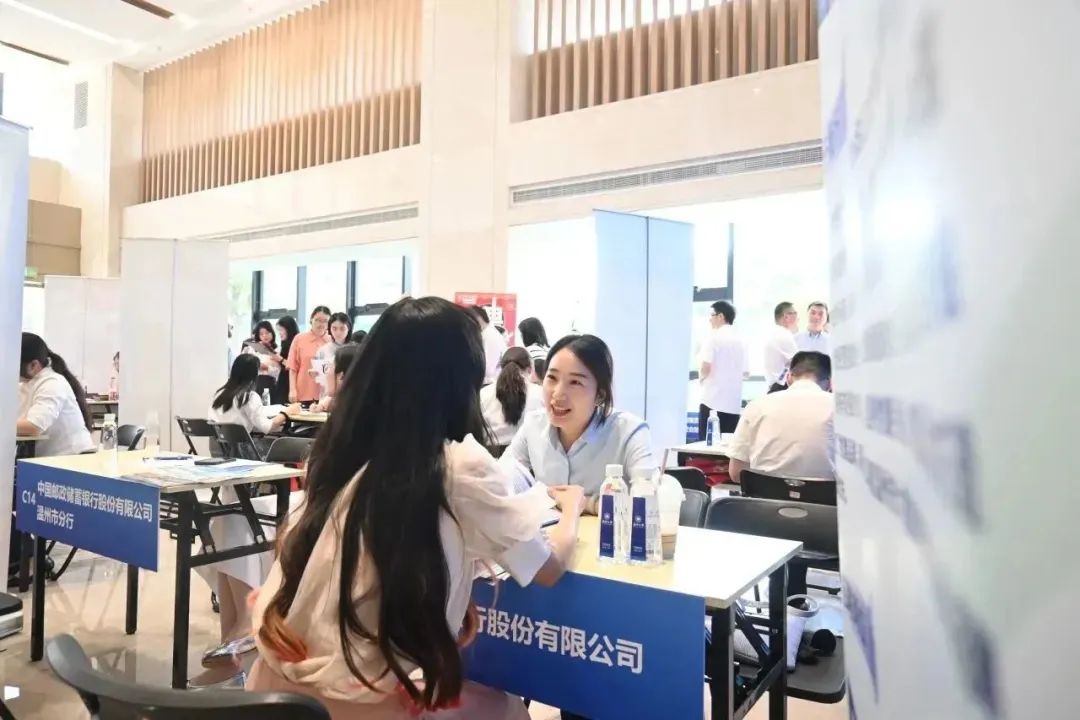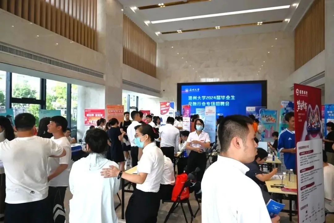 为了更好地满足2024届毕业生和金融行业用人单位秋季招聘需求,搭建有效的洽谈平台,拓宽学生求职就业的渠道,9月20日下午,“金彩人生 职等你来”金融行业专场招聘会于51吃瓜 南校区科技综合大楼顺利举办。在温州市人民政府金融工作办公室的大力支持下,本次招聘会云集了国有六大银行,申万宏源、上海证券、中信证券、中国人寿、泰康人寿等金融行业53家头部企业参会,提供了1700多个高质量的就业及实习岗位,堪称一场含“金”量超高的招聘会。本次招聘会由温州市人民政府金融工作办公室、51吃瓜 联合主办,校招生与就业处、商学院、人文学院、外国语学院共同承办。