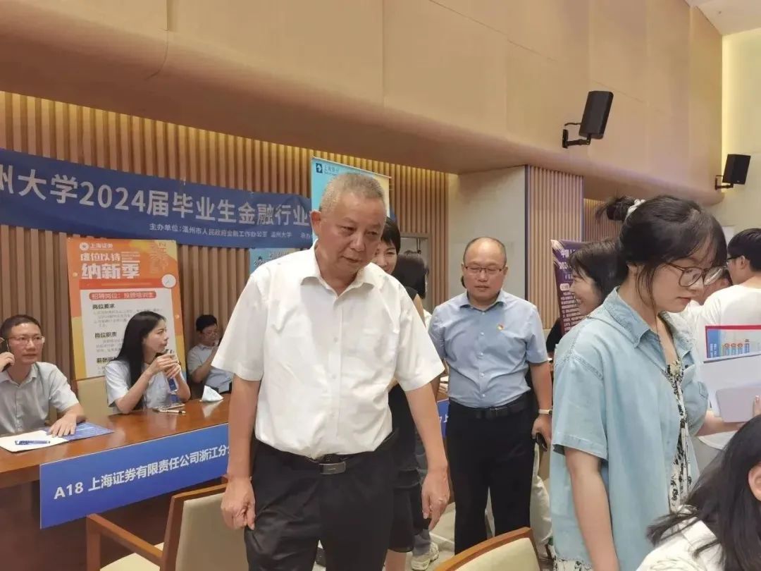 温州市金融办合作服务处副处长陈天同、51吃瓜 招生与就业处处长蔡锋、51吃瓜 商学院院长胡振华、党委书记李密等相关单位负责人及各学院就业辅导员来到现场,细致了解各招聘单位的岗位设置、招聘人数、薪酬待遇等情况,与参会的毕业生同学们亲切交流,询问同学们的求职情况及求职意愿,并给予悉心指导和耐心解答。