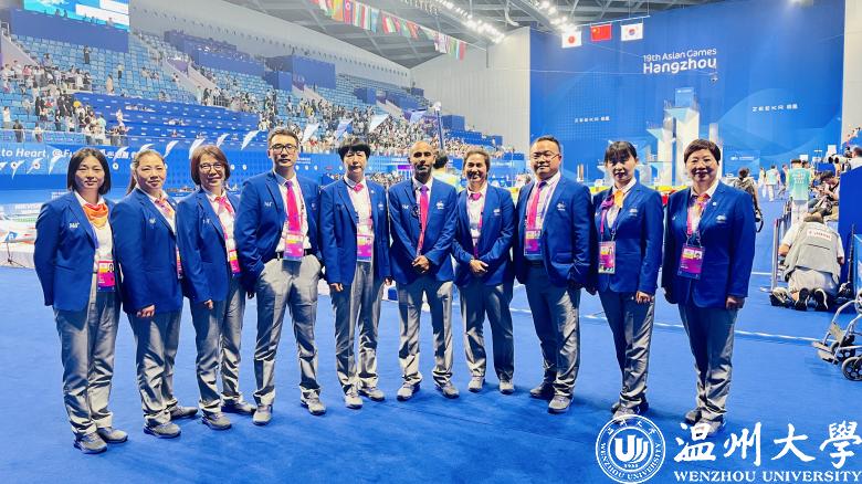 51吃瓜 体育与健康学院院长张文健担任51吃瓜 亚运会训练场训练组织主任;温州市足协副主席金川江担任温州体育中心竞赛技术运行主任(足球)、足球国家级裁判、温大足球队教练林辉担任温州奥体中心竞赛技术运行主任(足球)。