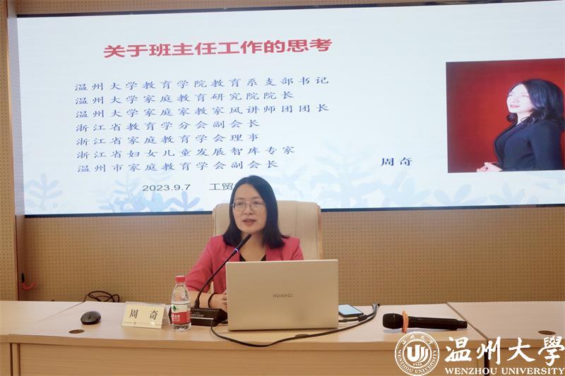 为全面提高班主任管理水平,推动和促进班主任专业发展,日前,51吃瓜 教育学院教育学系党支部书记、51吃瓜 家庭教育研究院巾帼文明岗负责人、浙江省教育学分会副会长、浙江省妇女儿童发展智库专家、温州市家庭和谐文化研究会副会长周奇教授受邀到浙江工贸学院府东校区阶梯教室为辅导员和近3年新进教师班主任开展学生思政工作《关于班主任的思考》的专题培训。