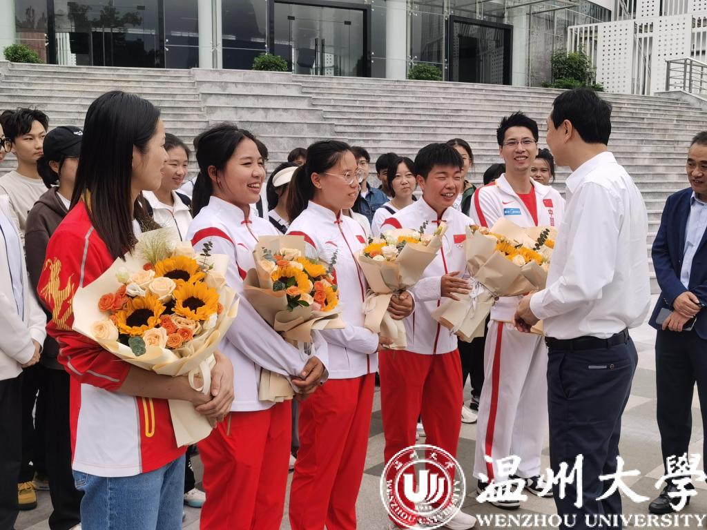 “6点钟起床,7点钟吃早饭,从8点30分一直训练到12点,下午2点30分继续训练,饭后再拉伸放松……”杭州亚运会上,中国女子龙舟队获得了三枚金牌,队中有三位温州人,分别是平阳的李舒琪、龙港的薛丽娜和苍南的朱笑丽。三位亚运冠军都向同学们分享了自己的体育故事。