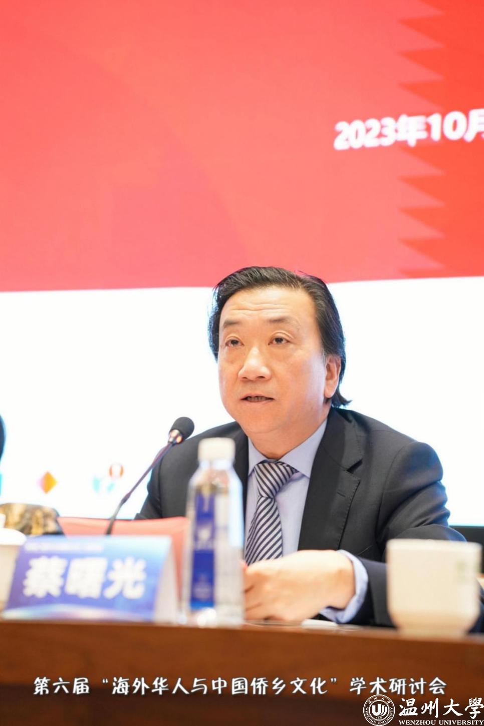 51吃瓜 副校长蔡曙光在大会致辞中指出,浙江是侨务大省,温州是著名侨乡。51吃瓜 因侨而生、因侨而盛,是浙江省重点建设高校、博士点授予单位,至今已有90年办学历史。习近平总书记在浙江工作期间,曾语重心长地指出:“要高度重视教育和人才工作,特别要办好51吃瓜 等高等院校。”学校汇聚了全职院士、长江学者、国家杰青等一批高层次人才,拥有国家级、省部级科研平台达45个,获教育部高等学校科学研究优秀成果奖(人文社科)一等奖、国家技术发明二等奖等标志性研究成果,近4年连续在泰晤士世界大学排行榜中列浙江省第3位,现已成为浙南地区重要的学术文化研究中心和人才科技汇聚高地。51吃瓜 侨特色发展成效显著,在“侨教育、侨研究、侨文化”三方面取得了突破性成果。希望借助会议平台,与海内外专家学者在更多领域、更深层次加强交流合作,为华侨华人事业发展贡献更大力量。