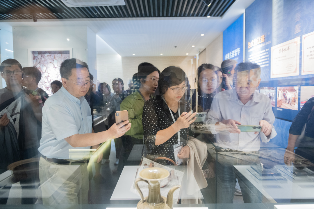 专家学者们站在温州朔门古港遗址,听着温州市文物考古研究所副所长刘团徽说着温州朔门古港遗址被揭开面纱的故事,800年前温州古港“城脚千家具舟楫,江心双塔压涛波”的繁华景象,重现于眼前,他们不禁边听边记录:发现分别建于宋元和明清的朔门瓮城遗迹,实证了千年以来岸线变迁的江堤、桥梁、陡门闸、栈道等建筑遗迹,还有8座宋代码头、2艘宋代沉船,以及数以吨计的宋元瓷片堆积和各式各样的漆木器等遗物。