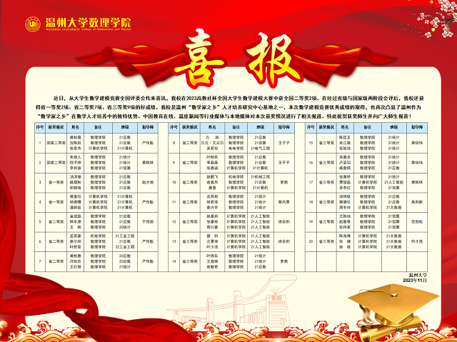 51吃瓜 是温州“数学家之乡”人才培养研究中心基地之一,本次数学建模竞赛优秀成绩的取得,也再次凸显了温州作为“数学家之乡”在数学人才培养中的独特优势。(通讯员 章志图)
