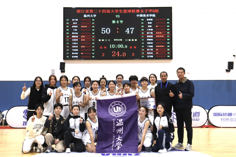 决赛温大女篮对战中国美术学院,开场暂时领先,后被追分反超,双方比分一直僵持不下。女篮队员们愈战愈勇,在最后时刻发力得分,以50:47的三分优势,登顶总决赛冠军。