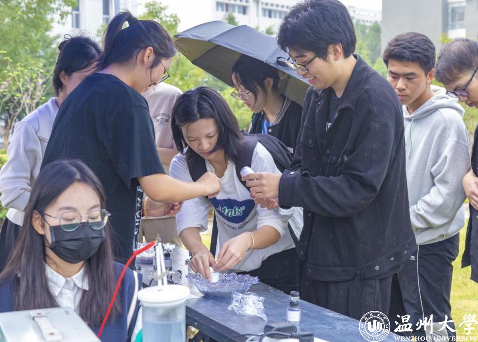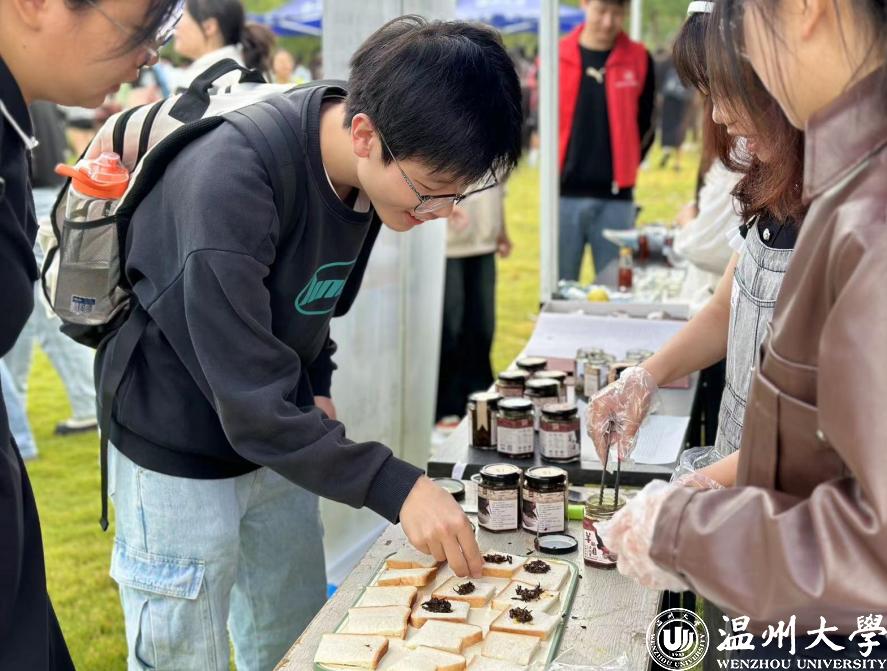 昆虫琥珀及植物书签制作摊位边,同学们亲自挑选材料,亲手制作,感受制作过程的乐趣;两爬动物科普摊位边,同学们纷纷上手触摸、把玩,蜥蜴、蛇等两栖类动物新奇的手感让同学们惊叫连连;在净水装置制作及展示摊位上,同学们在聆听了专业人员的讲解之后,选择了材料,动手制作了属于自己的水龙头过滤器;羊栖菜品鉴深受众多“吃货”喜爱,同学们用羊栖菜的发酵液现场制作碳酸饮料,用羊栖菜罐头制作三明治。活动现场还有老师和研究生进行专业科普和指导,让同学们深入浅出地了解生物环境相关学科。