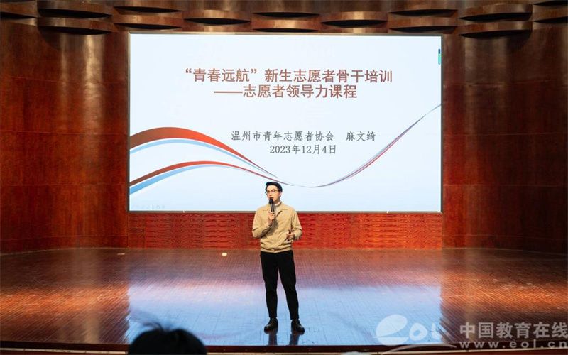 温州团市委志工部干部兼市青年志愿者协会副秘书长麻文绮,应邀为“阳光”志愿者做讲座培训。他从志愿者基础知识、典型案例分析、实践经验分享等角度展开讲解,结合“阳光”过往33年的实践经历,向广大数理学子介绍了公益服务过程中的有关注意事项,勉励大家要传承创新,敢闯敢试,敢为人先,为温州慈善事业献更多的“青春力量”。
