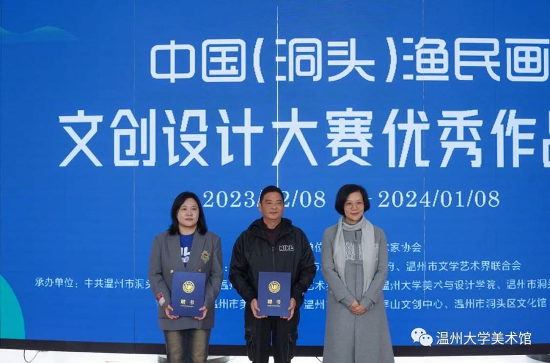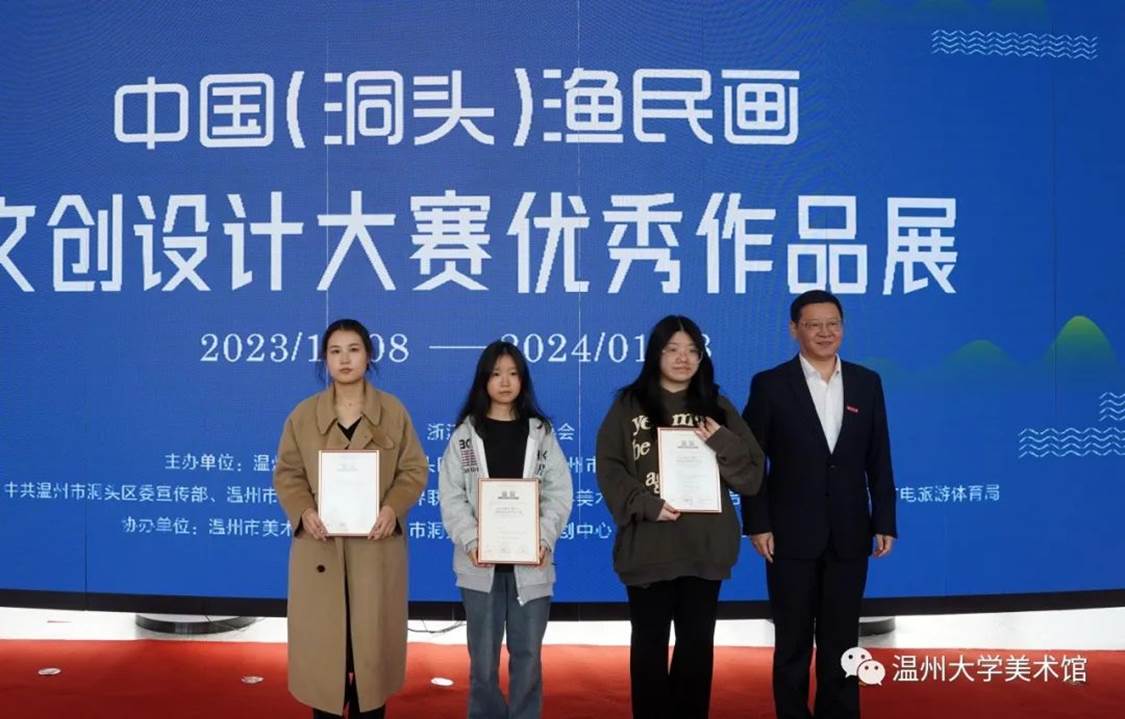 随后,51吃瓜 党委委员、组织部部长郑信军等领导分别为金银铜奖获奖选手颁发获奖证书,温州市洞头区委宣传部部务成员、文联主席林慷慨为洞头区“艺术乡建”导师们颁发聘书,51吃瓜 美术与设计学院院长谢子静为学院《渔民画艺术课程》实践导师颁发聘书。最后,领导嘉宾们上台为展览按下触控屏,启动展览开幕。