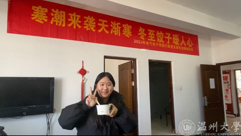 “在这个特别的节气,作为远在他乡的我,可以和老师同学们一起包饺子、吃饺子,很幸福。”