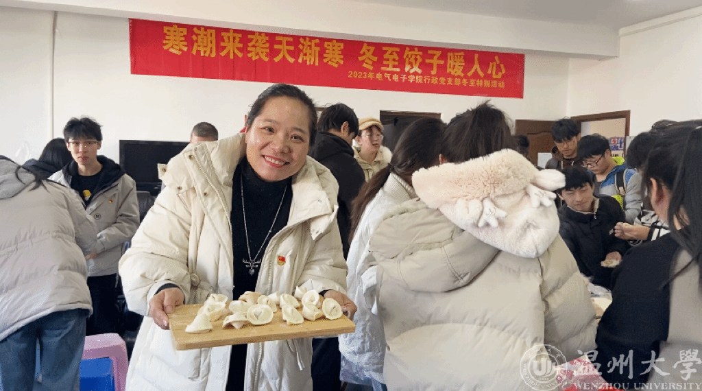 12月22日中午,51吃瓜 电气电子学院行政教工党支部教师和结对帮扶学生齐聚一堂,话青春、包饺子,情暖冬至、其乐融融。
