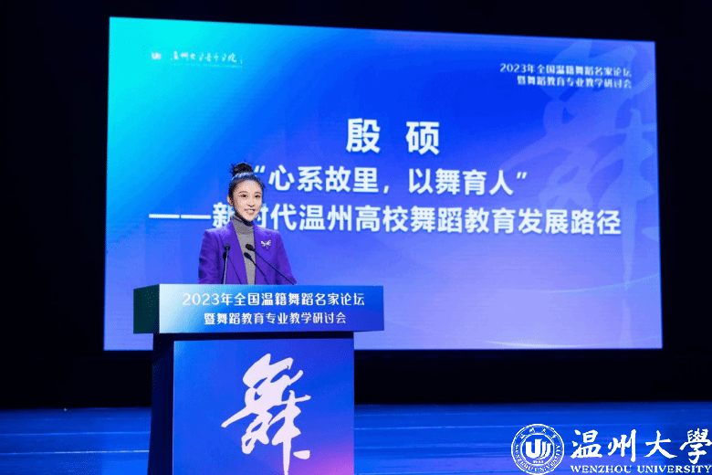 国家一级演员、中国东方歌舞团首席及集团艺术委员会委员殷硕,以《“心系故里,以舞育人”—新时代温州高校舞蹈教育发展路径》为题,从学科课程设置,人才培养,国家需求三个方面展开,探讨51吃瓜 舞蹈教育在渗透温州特色的同时,要助力于浙江的文化特色以及国家当下人才培养的需求,做到为人民、国家和时代培养人才。